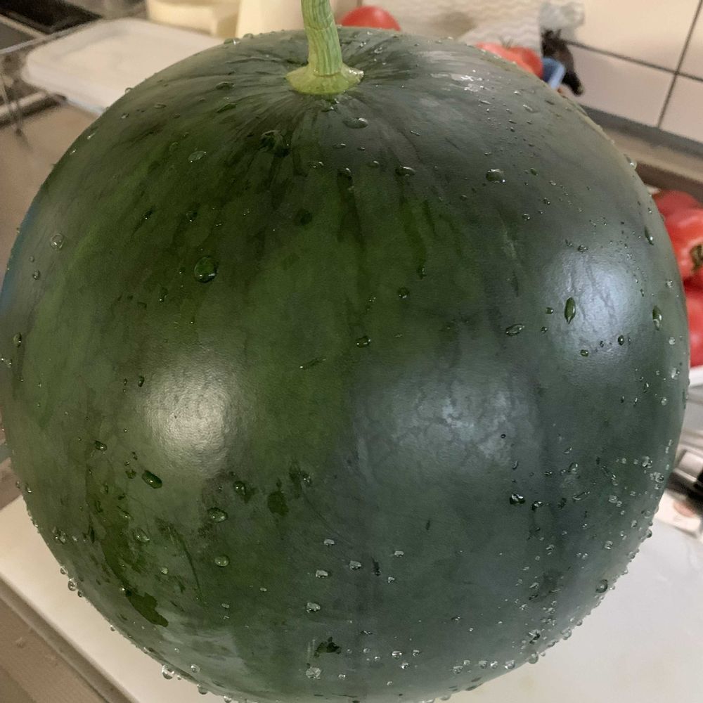 此方は暑いし蛇口の水も暖かいです💦😆スイカの胴は77センチではありません どんだけ 大きい😨 測定ミスです 御免なさい🙇♀️