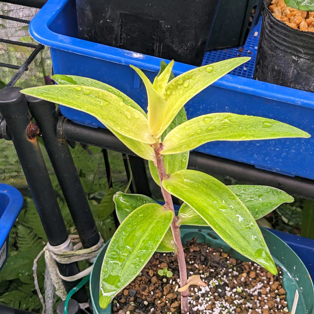 開花時期になると蕾・花茎と先端の葉ぐらいしか斑が入りませんが、4枚目のように芽吹きの時期は神秘的で美しいです!