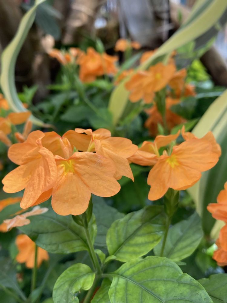 クロサンドラの園芸品種で、オレンジ色の花穂を立ち上げて咲く姿が特徴的な植物です🌼🌸