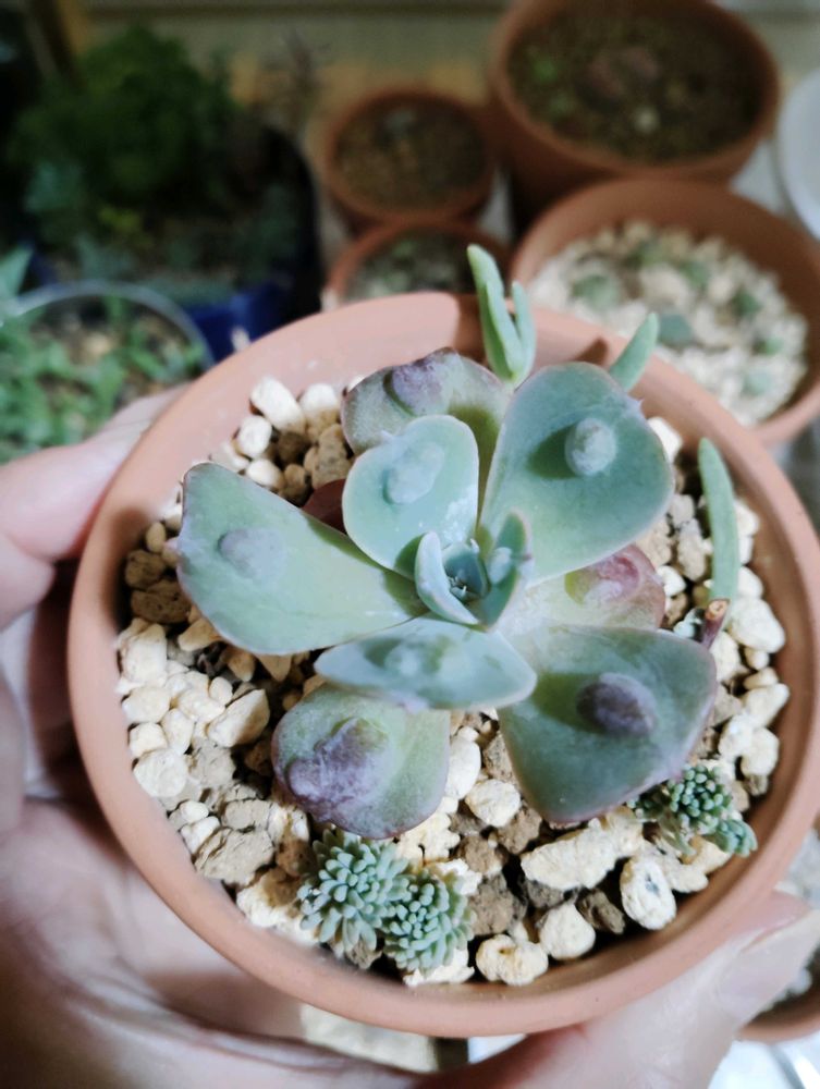 ネットで調べながら自己流で植物を育てている初心者です。7年ぶりに植物を育てはじめました。ほとんどフリマの子です。 多肉植物がメインですがマドカズラ、ポトスエンジョイ、カンガルーポケットも育てています。