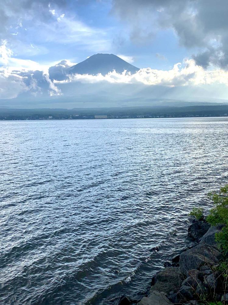 山中湖から見る富士山は、雲を纏って素晴らしいです。
