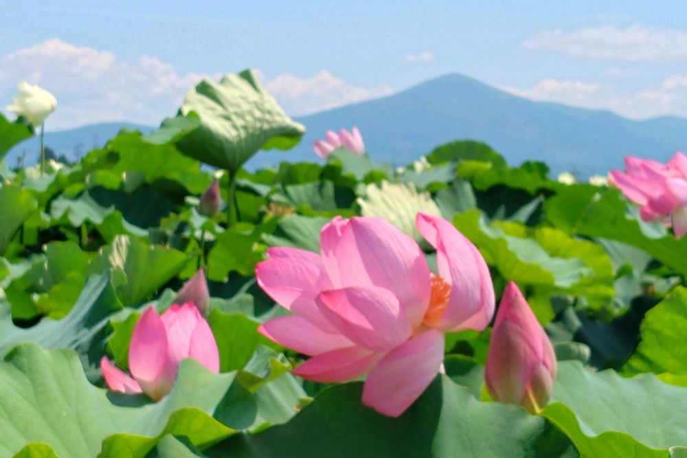 姫神山も岩手山も見えてとても素敵な蓮園ですね😊