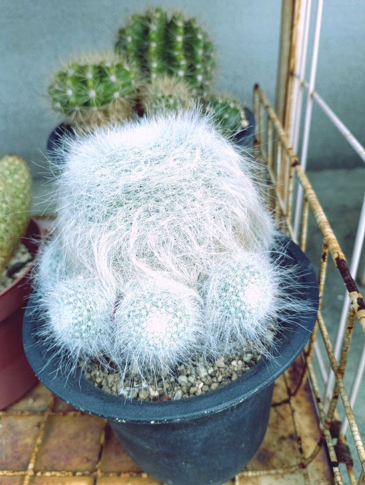 白いモフモフ系は 教えて貰った余計に 白星 翁丸 玉翁綿 老楽 と有りました 柱になるのも有るし 私のはまだ丸こいので どれになるのやら?! これから上に伸びるのかな???