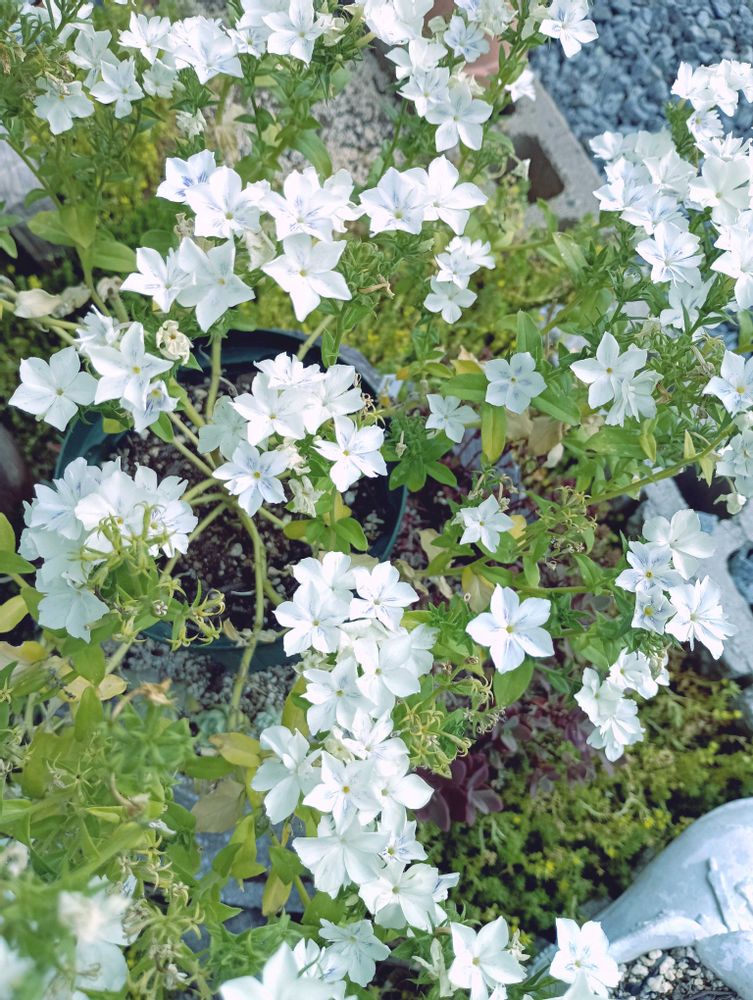 花が白くなってしまったフロックス-シュガースターズ この暑い中沢山花咲かせ頑張っています🙆🥰 (春に買って植えつけた花苗)4/18投稿しています
