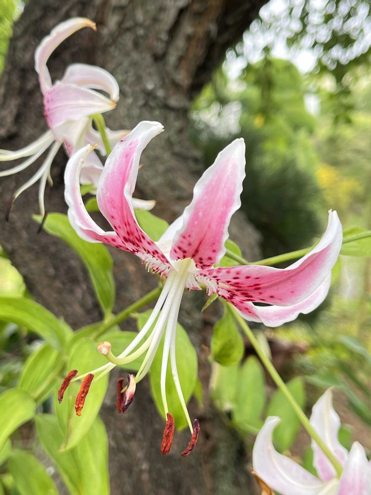 母が育てているユリです。品種は分かりません💦園芸種のゴージャスなユリというより、山野草ぽい感じのユリです。