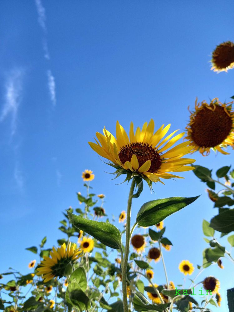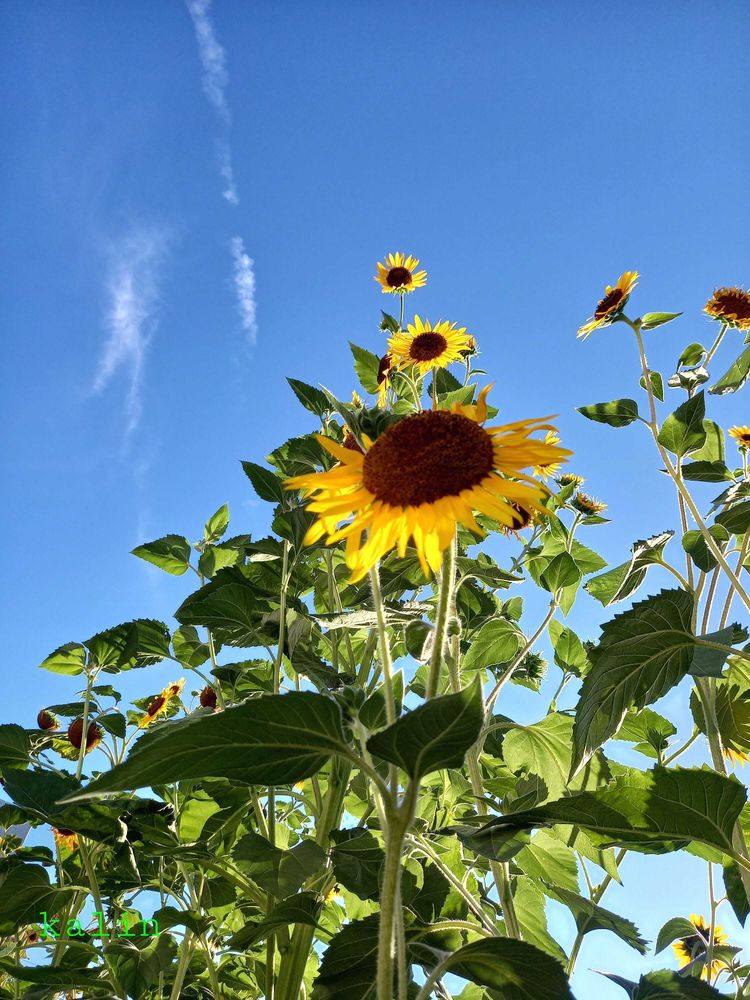ひまわり🌻がたくさん咲いていました。空に向かって元気に咲いていました。