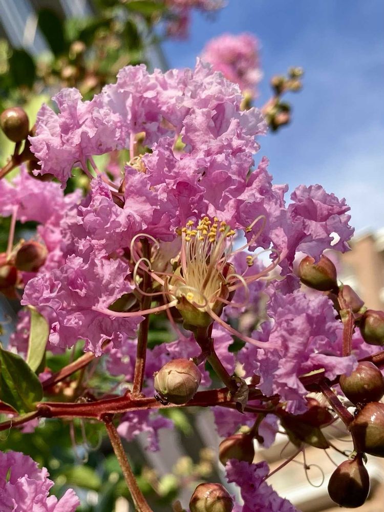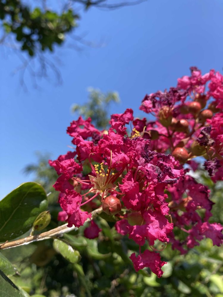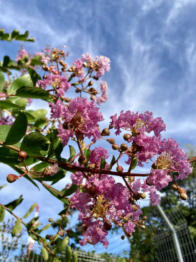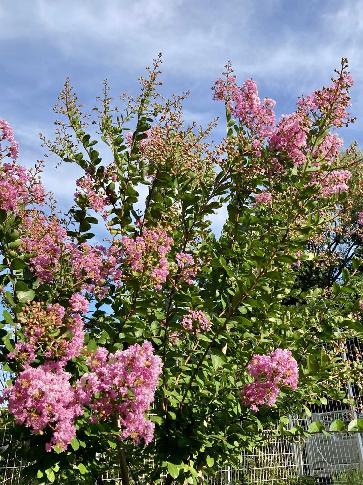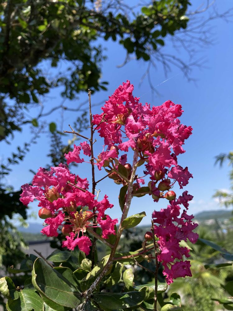 おはようございます☀青空とサルスベリが綺麗ですね👍️お花大好き❤これからも宜しくお願いします🙇
