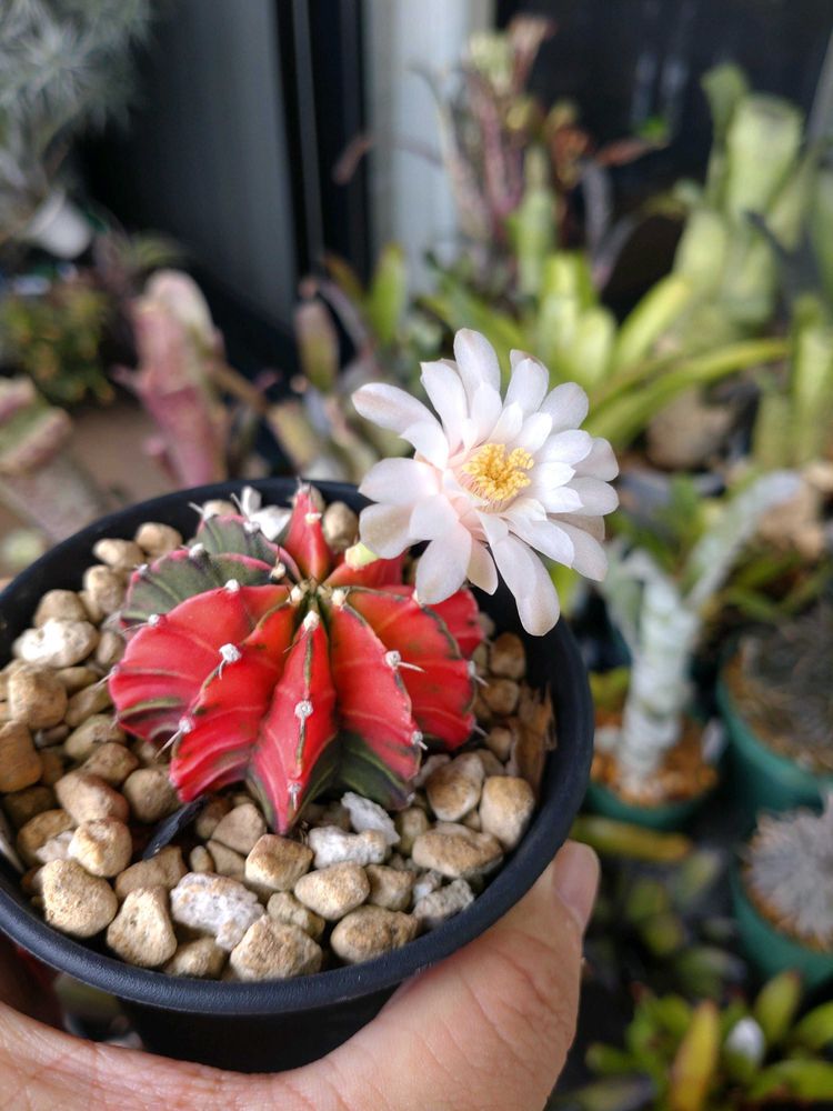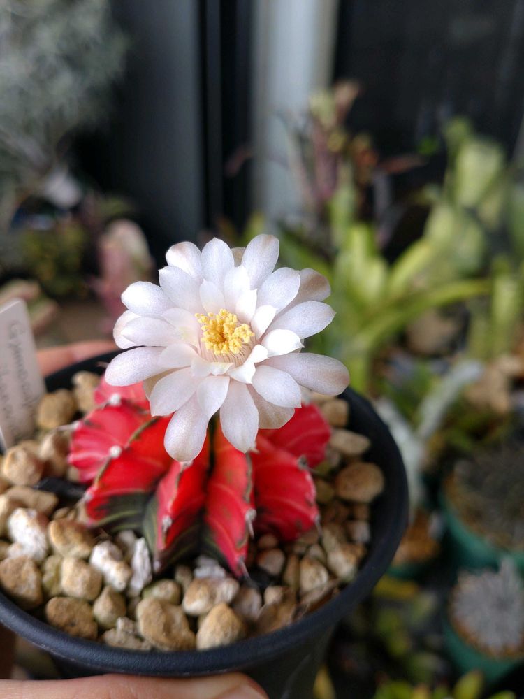 明るい午前中に撮影したからかな?色は写真でそう見えてるだけのような。はむさんちはコーデックスがうまくいく環境だから斑入りには光が強すぎるのかも?それはそれでうらやましいのだけど