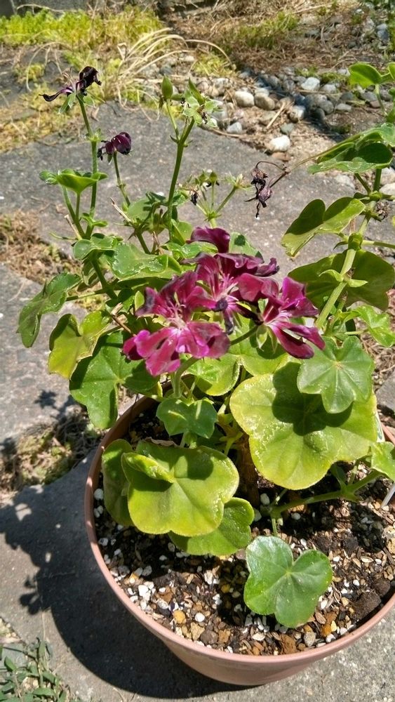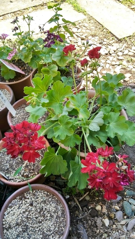 蠍雅さんのゼラニウム カリオペ ダークレッド,ゼラニウム プリティリトルピンク,アイビーゼラニウム カラーケード ダークバーガンディの投稿画像