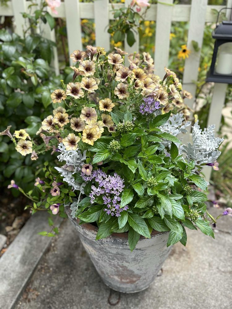 ペンタスとスーパートレニアのラムレーズンとも色合いがよく合っていて今シーズン1番お気に入りの寄せ植えです🤩