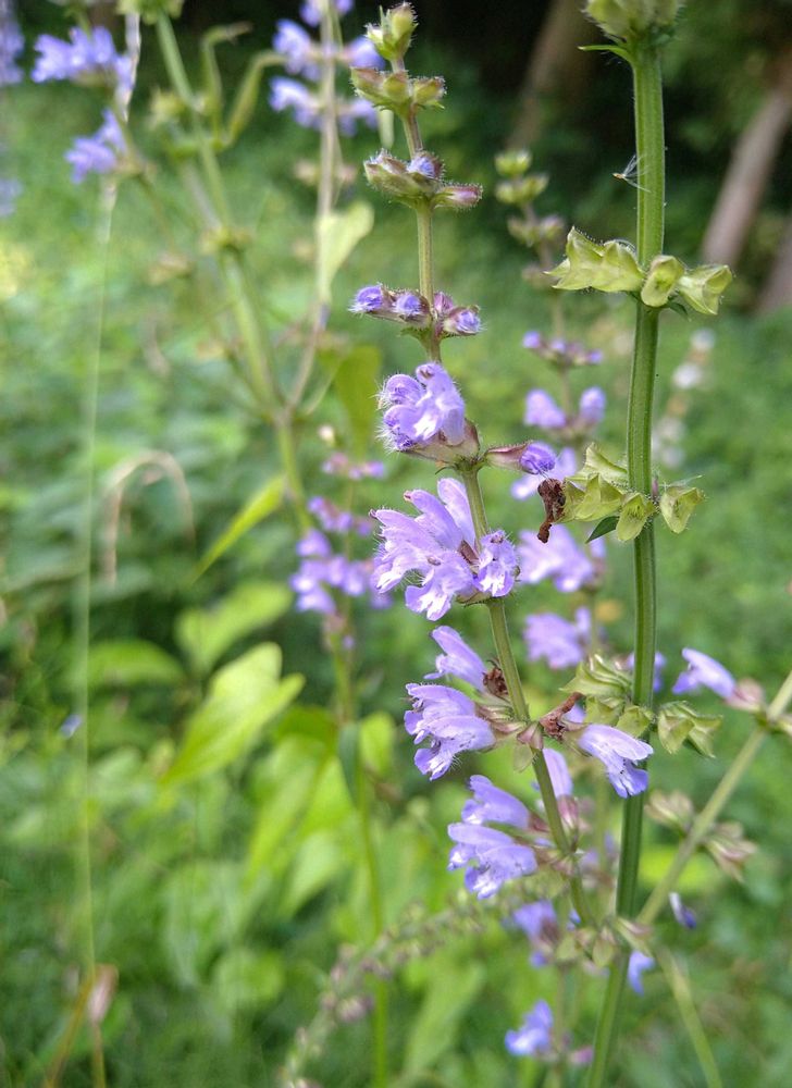 ①② 草むらの中から涼しげなアキノタムラソウが顔を出しています🌿💜