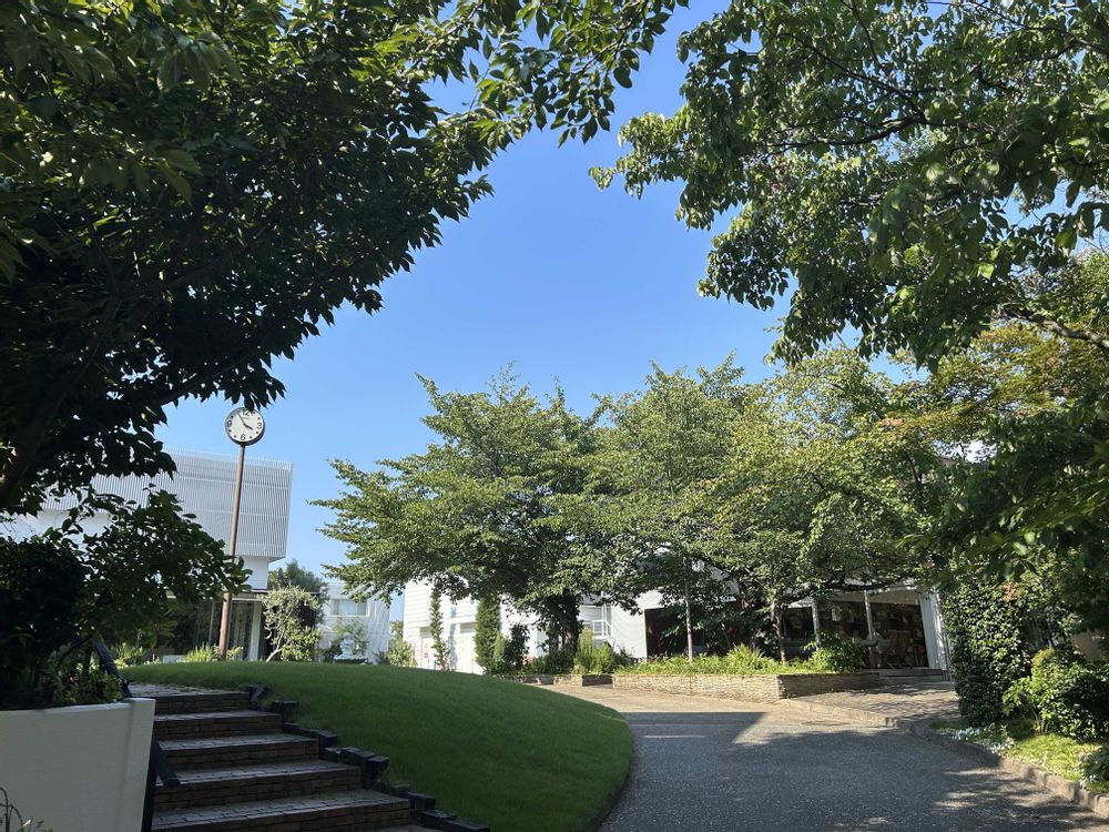 夕方の製薬会社研究所のガーデン🪴🌲🌳
