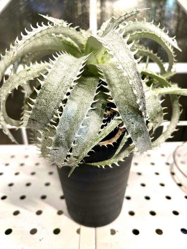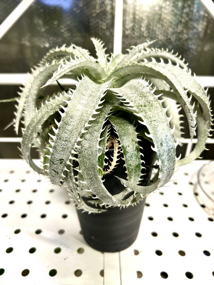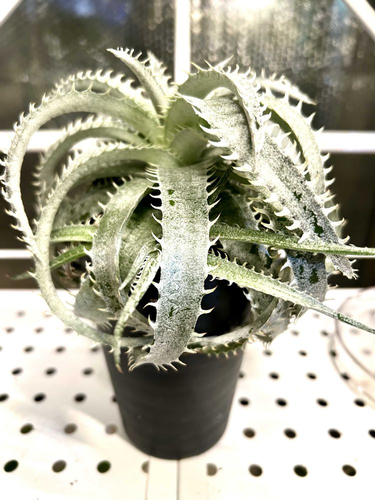 ディッキアの代表的な原種で、通称「ML」とも呼ばれます。厚みのある白い葉がカールしながら何重にも展開し、重厚な雰囲気があります。