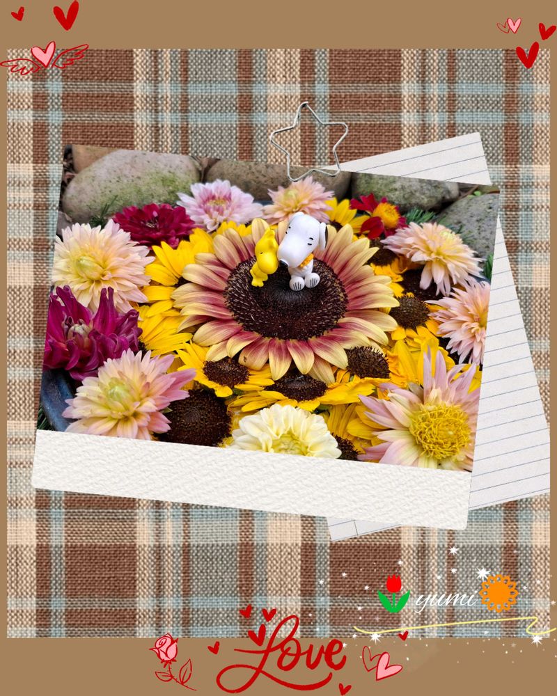 スヌーピーとひまわりのコラージュとても可愛いです😍