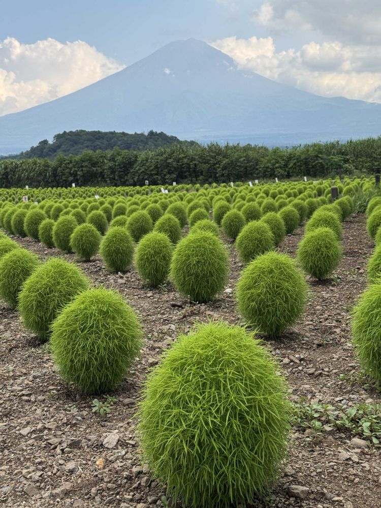 コキア この色から徐々に紅葉が始まりますね~真っ赤に紅葉したコキアと富士は絶景でしょうね~🎶😊