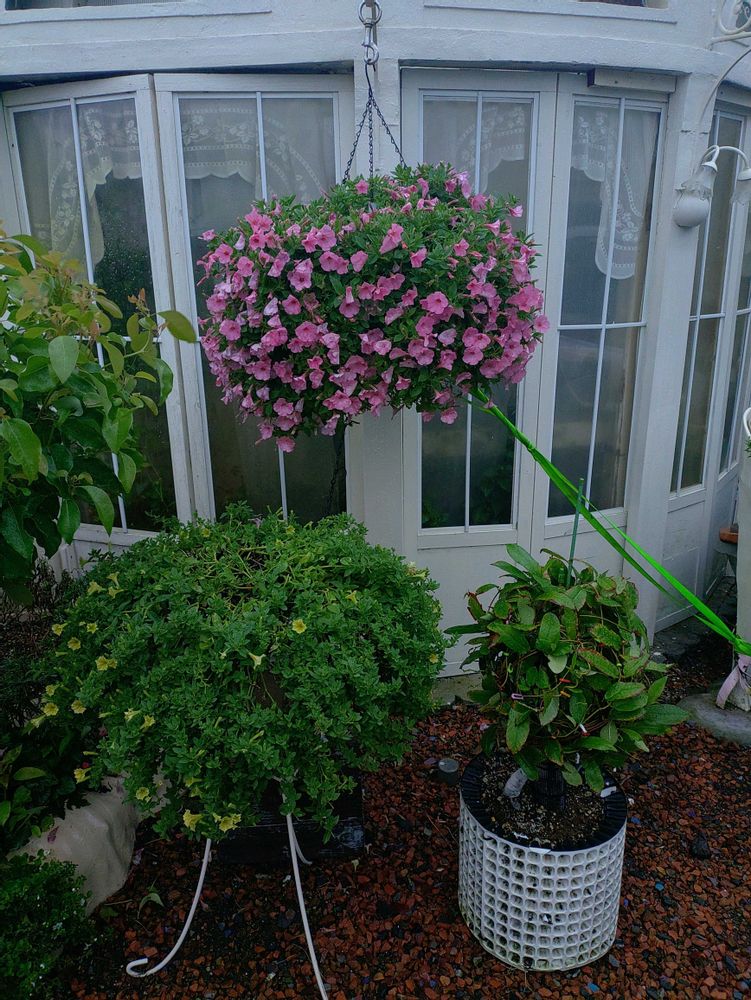 台風大変ですね〜 ハンギング大きいから風🌪️で直ぐに倒れますよね チェーンで引っ張ってあるのですか🤔 凄い‼️