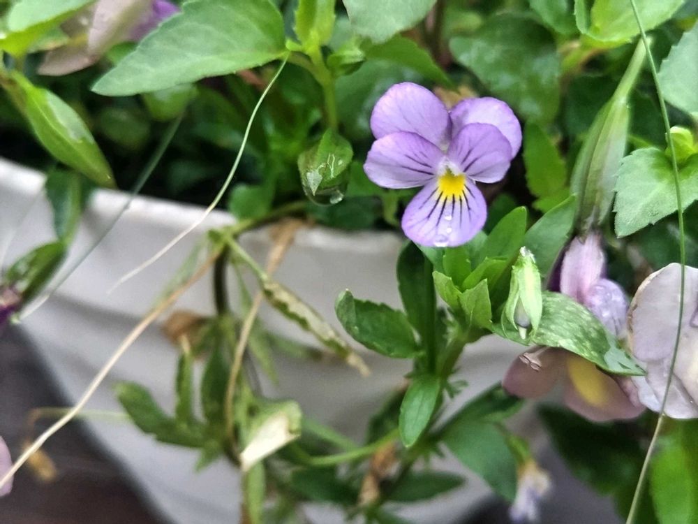 昨年のスーパートレニアカタリーナラムレーズン。また今年も頑張ってお花を見せてもらいましょう。ビオラも咲いています。