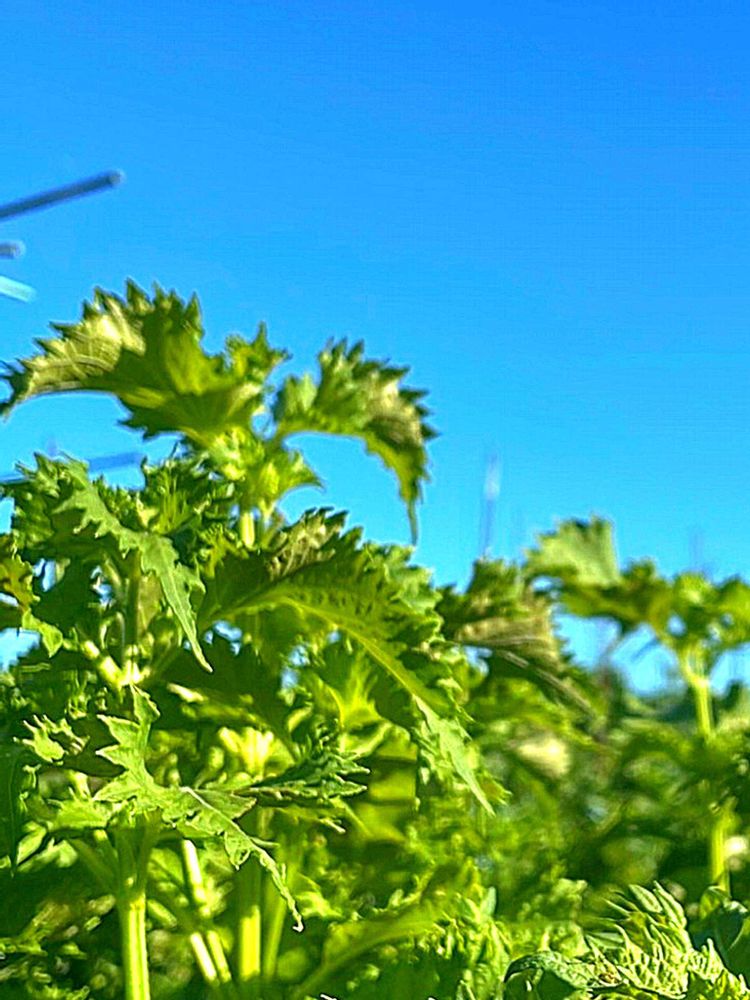 青空に映えるシソ、良い感じでしょ😁こんな感じに写るのだなと、思いましたよ☀️