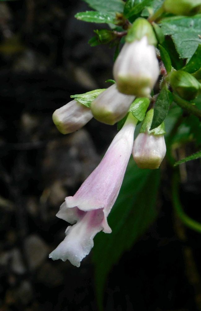 花は長さ4cm位の筒状で先が唇の形です。