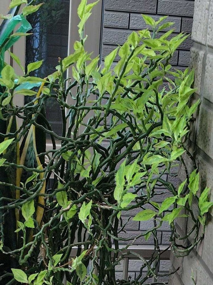 日陰配置なので、葉が全然出てこなかったけれど、やっとこんな感じになりました。植え替えしてないので、枝がヒョロヒョロ。