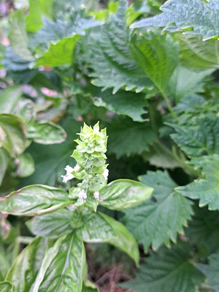 シソはまだ咲いていないのでシソ科のバジルと一緒に~🎶