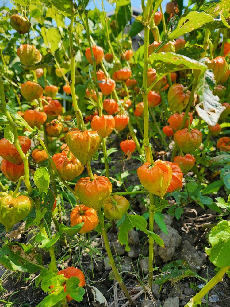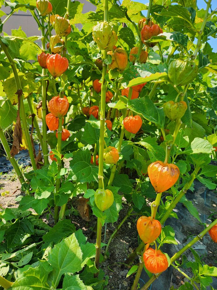 1️⃣2️⃣畑のホオズキが色づいてきました。虫食いの葉っぱを取ったら赤い実が綺麗です。