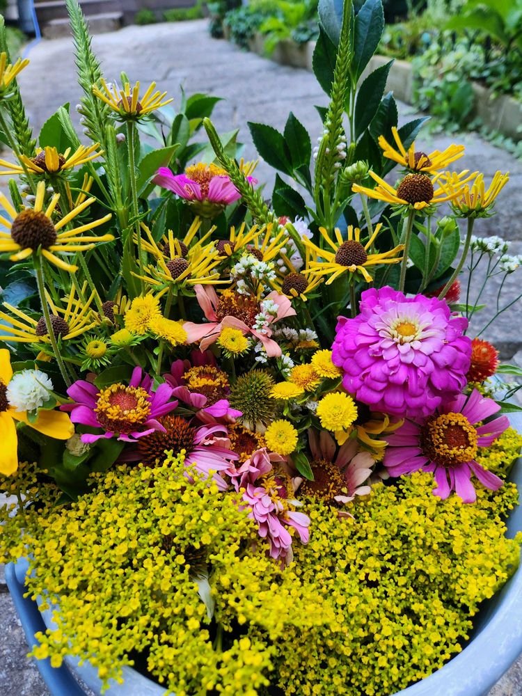 3️⃣今日は御先祖のお墓参り、畑のお花で豪華にお参り花が出来ました。