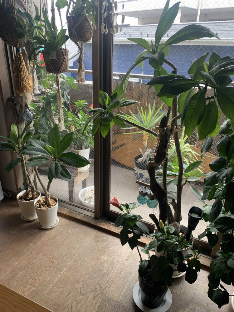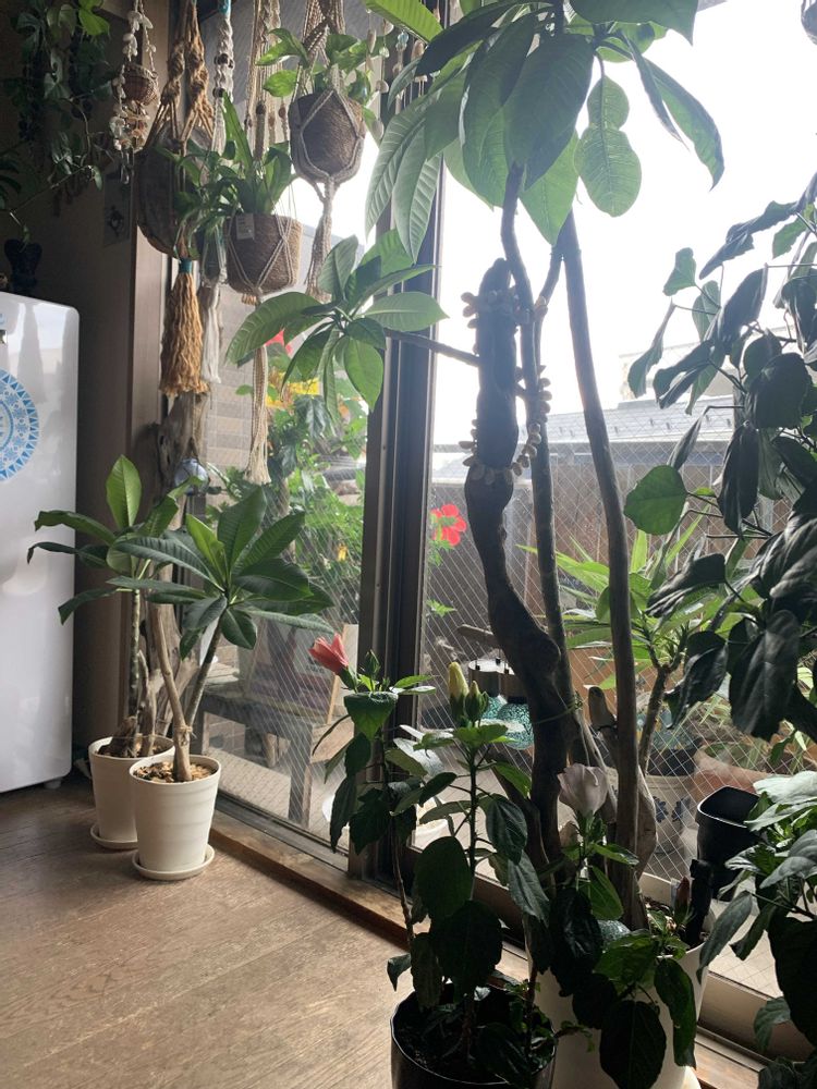 おはようKeiちゃん🤭我が家のリビングはジャングルです笑😂けど家の中から外を見ても緑が多くて癒されるよ💕💕