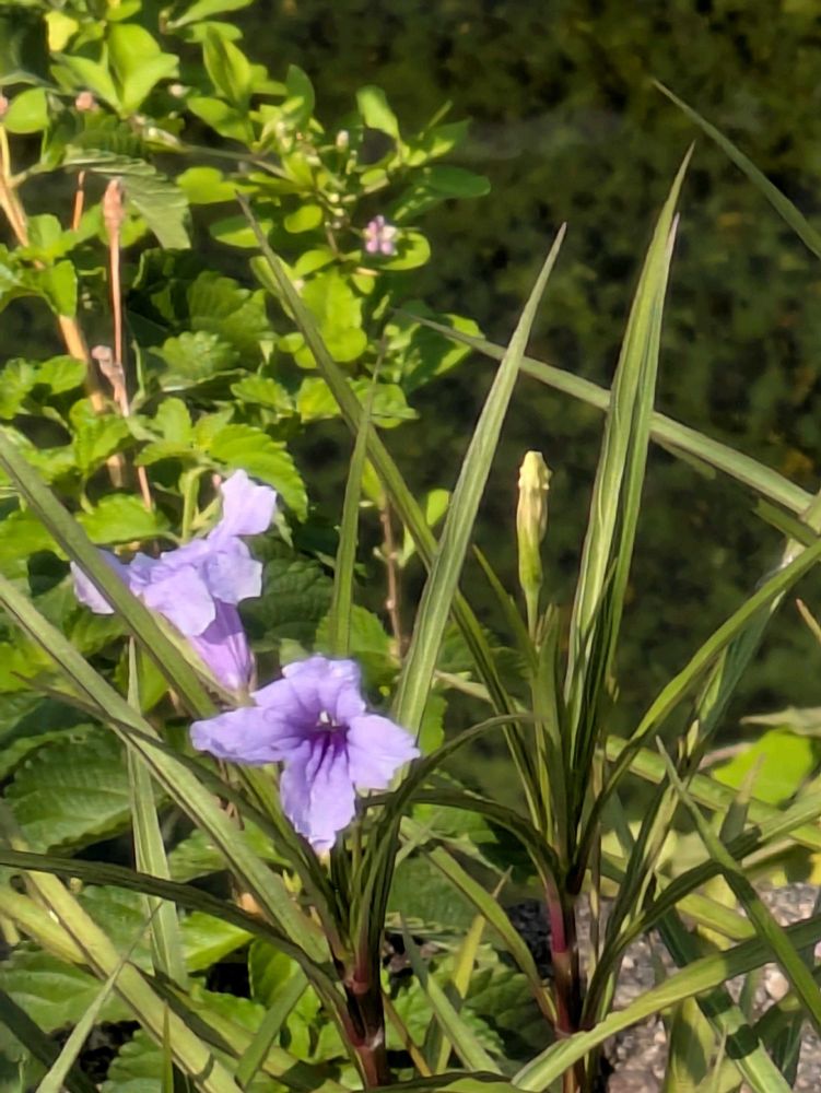 ⑤ヤナギバルイラソウ別名ムラサキイセハナビ キツネノマゴ科 ルイラソウ属 栽培種かと思いきや、何と川のコンクリート壁近くに群生していた。