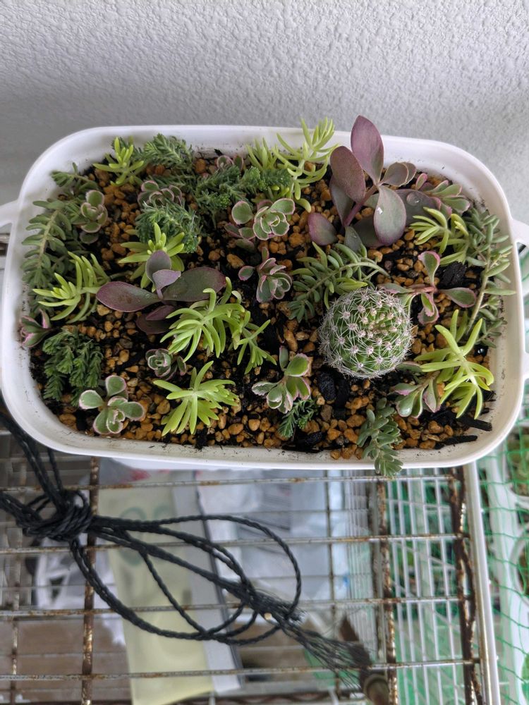 ①タニ友さんから頂いたお中元を寄せ植えに。ありがとうね😘私のもとにうん十年ぶりにサボテンさんがやってきました😄セダム類は(他のもだけど🤣)水やりのタイミングがよくわかりません。前は水欲しがってるかとじゃぶじゃぶやって根腐れしました😭今度こそ💪