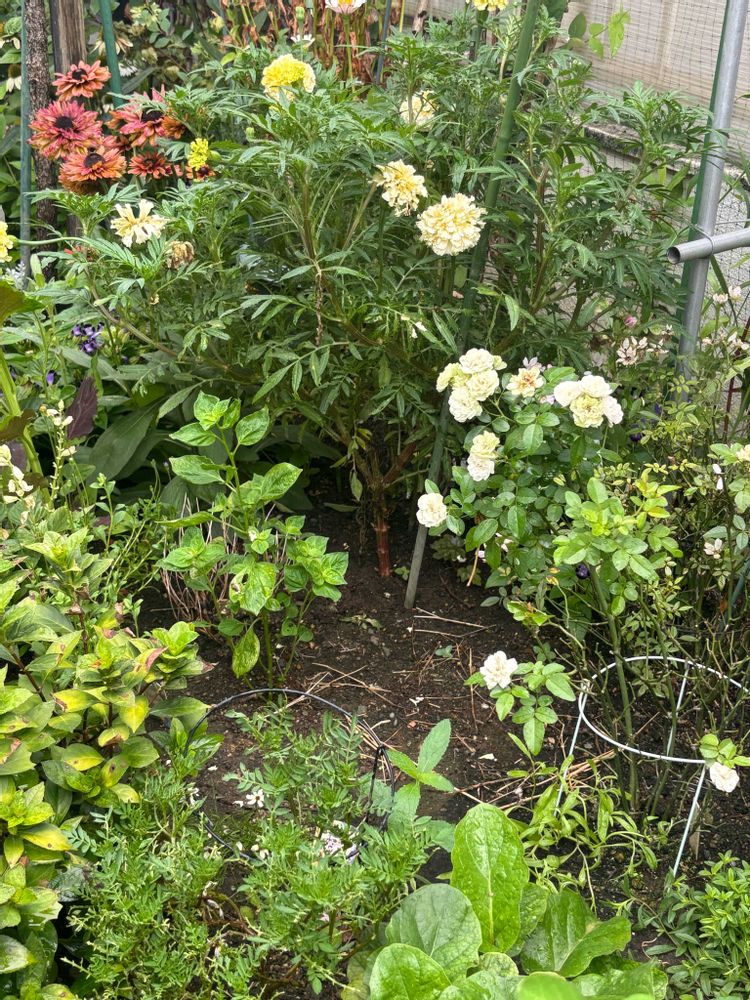 コンパニオンプランツとして数年前にフレンチマリーゴールドをたくさん植えてましたが、横に株が広がり過ぎたのでやめました。