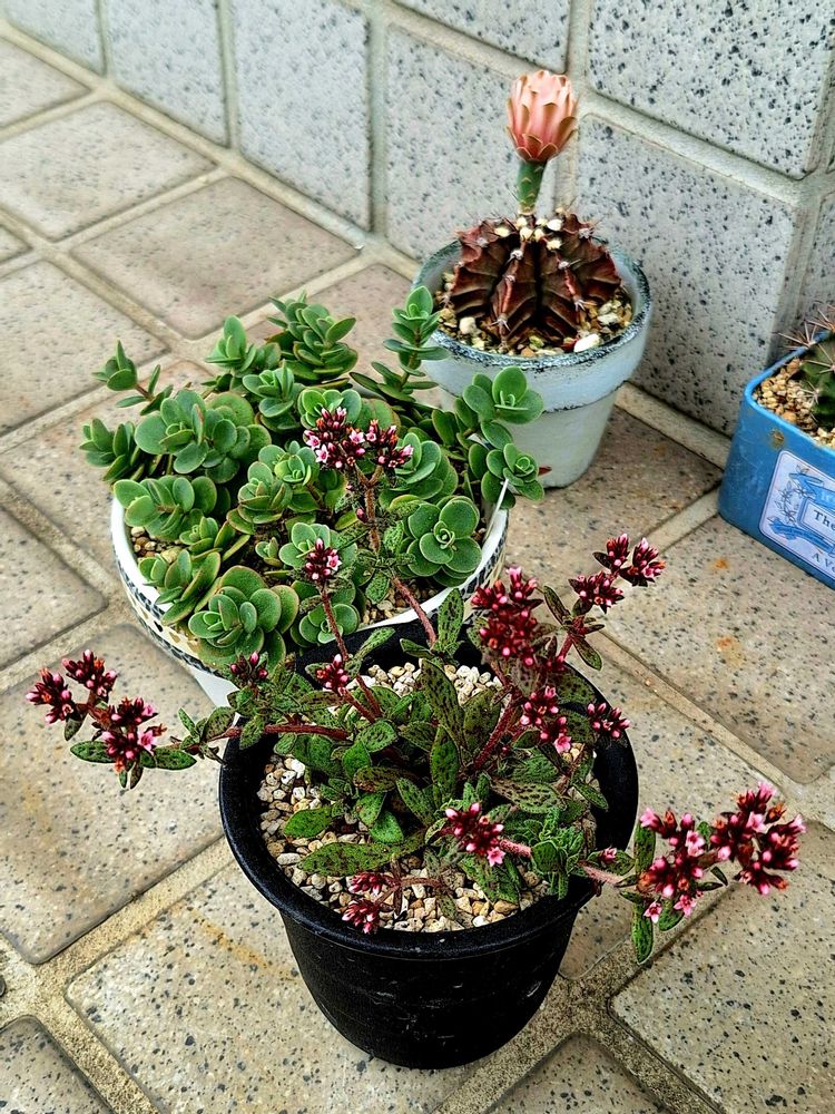 ④⑤他の植物の陰でひょろひょろだったクーペリー、鉢あげしてお一人様にしておいたら、可愛いお花を咲かせてくれました❕😄👍✨