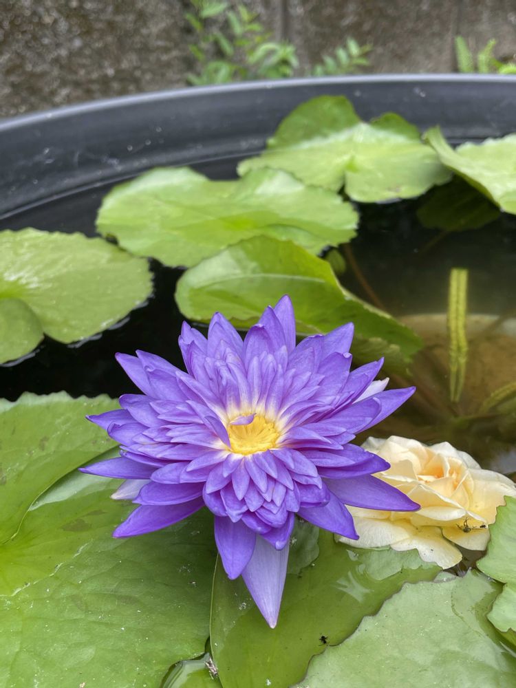 その一画に水を張った鉢が置かれていて、熱帯睡蓮が咲いてました。