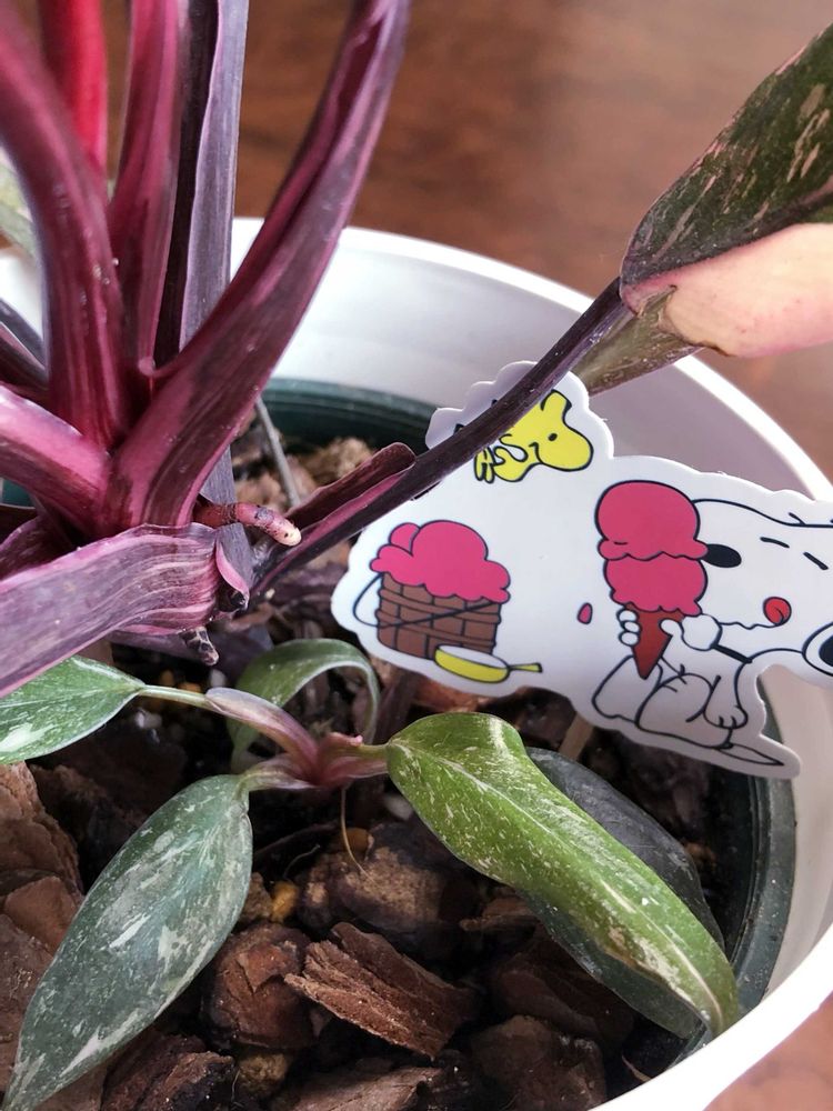 葉っぱがねじれながら開いて生まれています🌿✨支柱どうするか考え中…➡️withスヌーピー🍦🍧