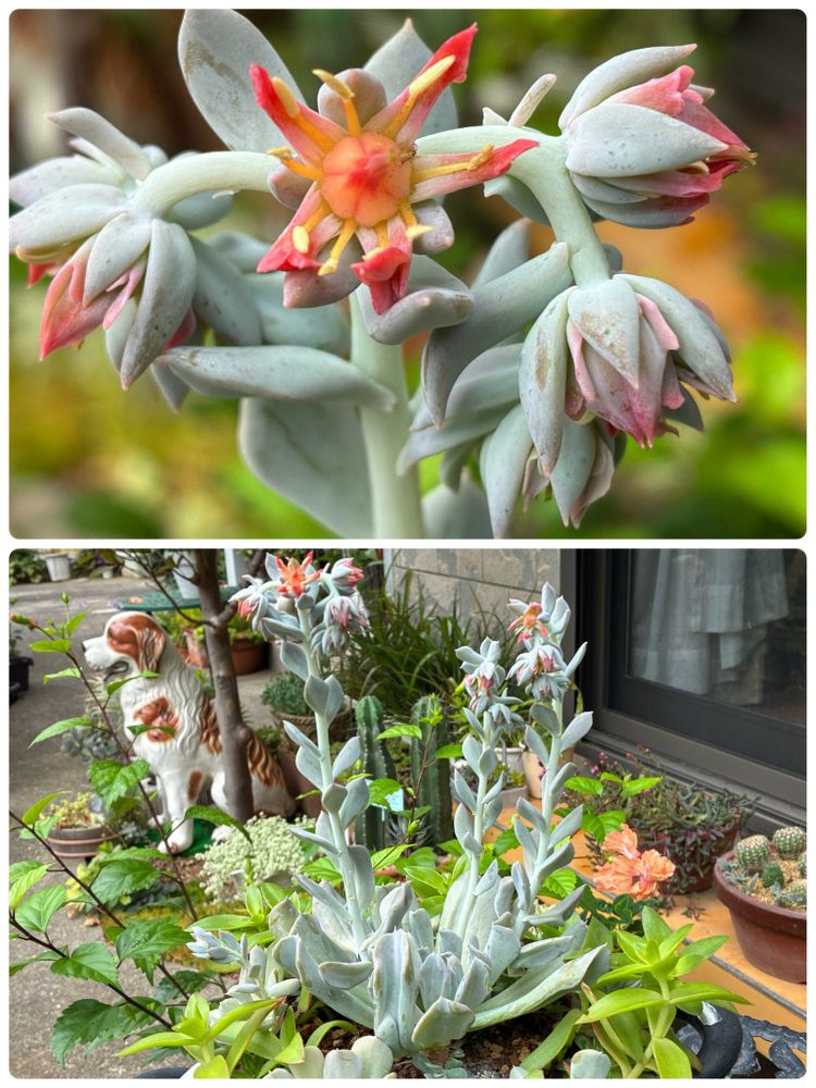 12月に多肉を✂️し鍋寄せ?した子たちが徒長し、カタツムリ🐌にやられながらも立派な花を見せてくれました💕🎶