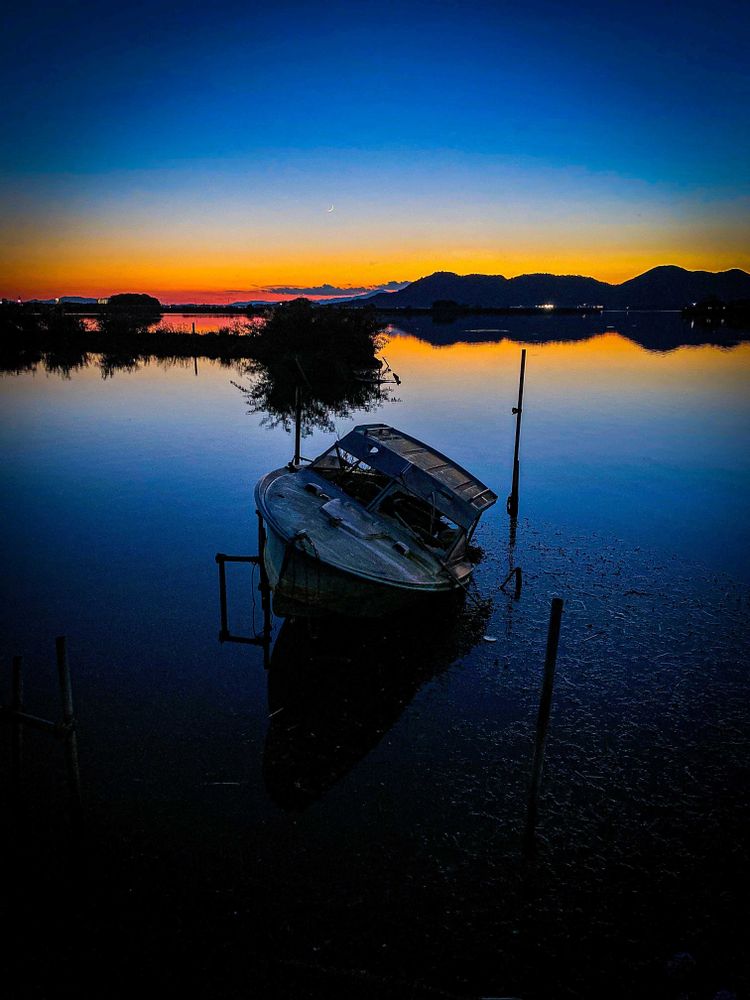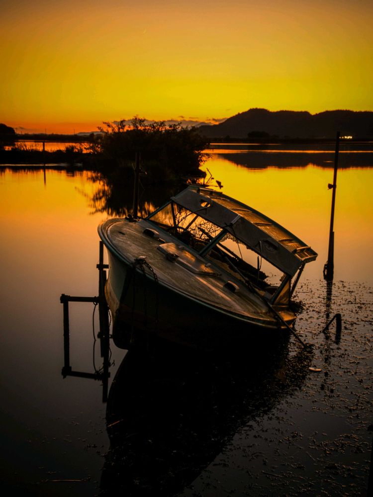 滋賀県近江八幡市 西の湖の沈没船と夕陽…😄😄
