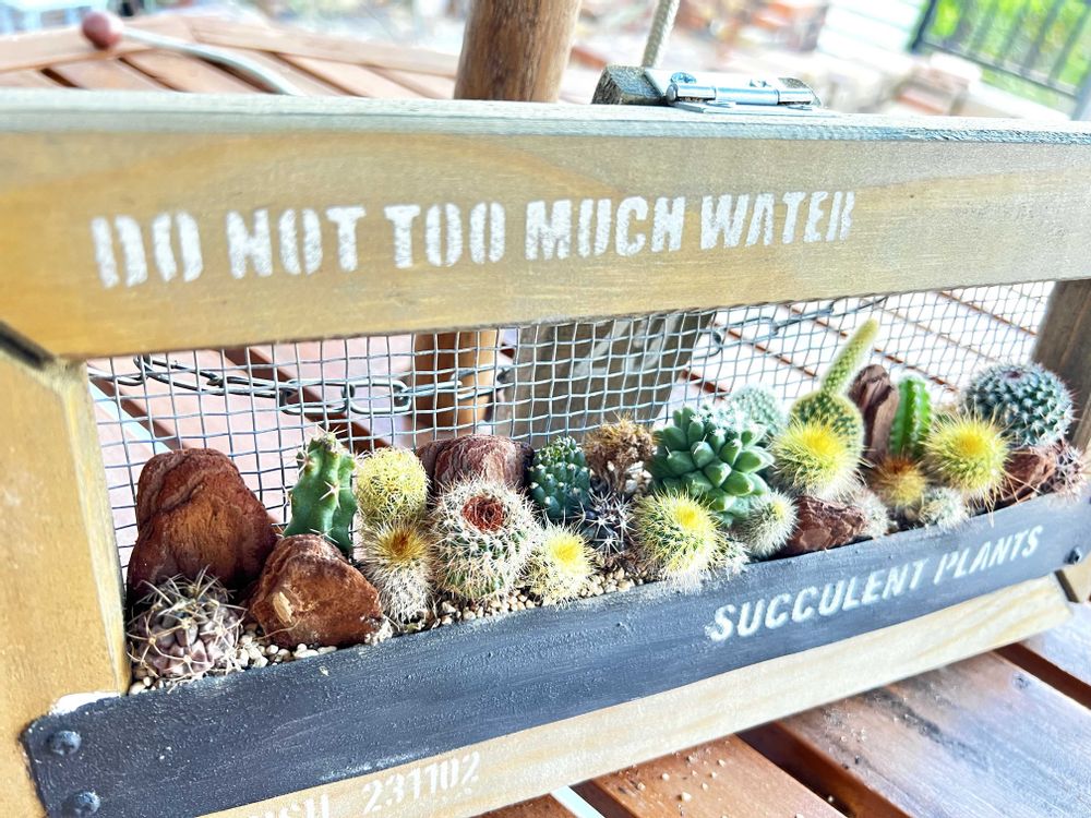 サボテンって、単独だとイマイチですが寄せ植えにすると可愛いがギュッと詰まってますよね😊