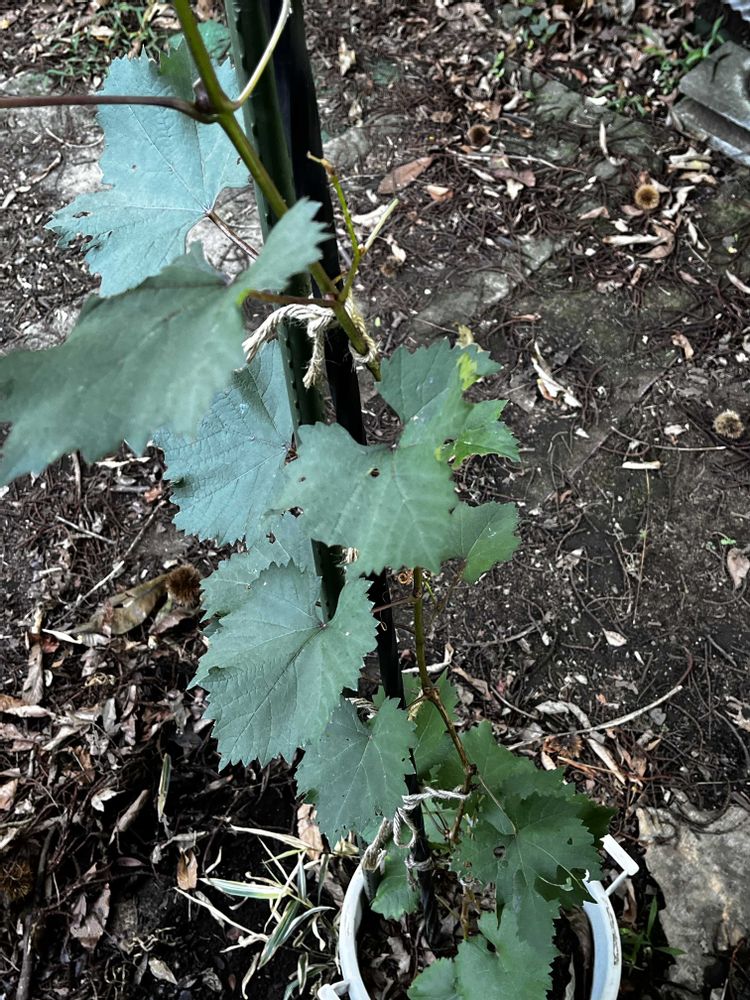 今年の冬に、根付いた椿の鉢物を処分する際に根元に混植されていたマスカット。