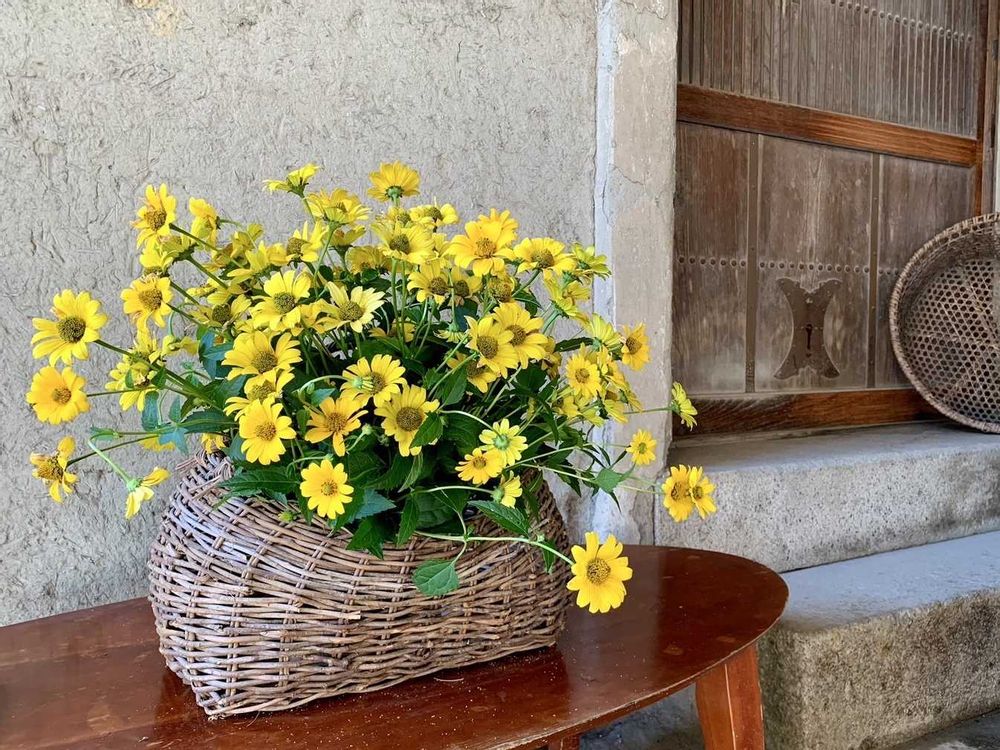 蔵カフェの土壁に映えてキュートな雰囲気にしてくれる