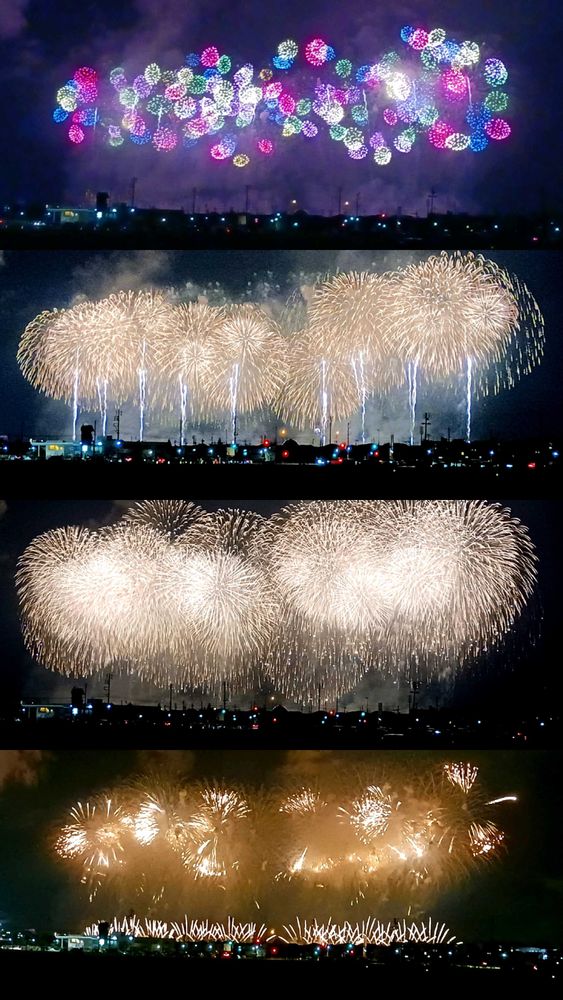 動画投稿できないので、フェニックス花火を上から時系列に並べてみました~🎆🎆🎆