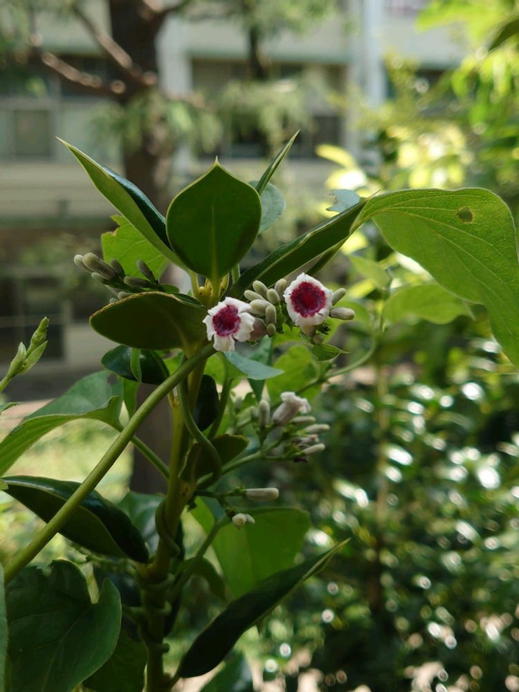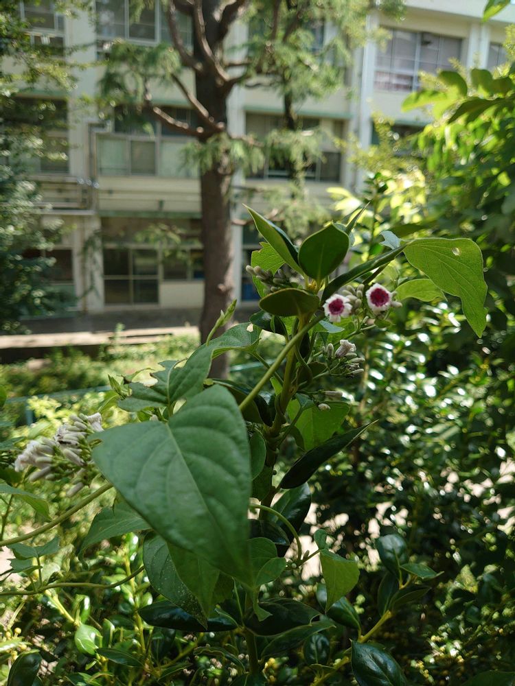5️⃣ヘクソカズラ💕背景は緑道を挟んで、中学校の校舎です🏫