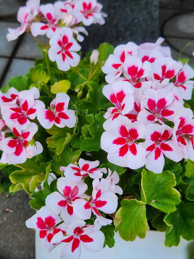 ゼラニウム変わった色合いで咲いてるね🤍💗