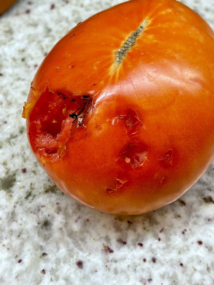 普通サイズのトマト アーリーガールは、最近齧られているものが増えてきた