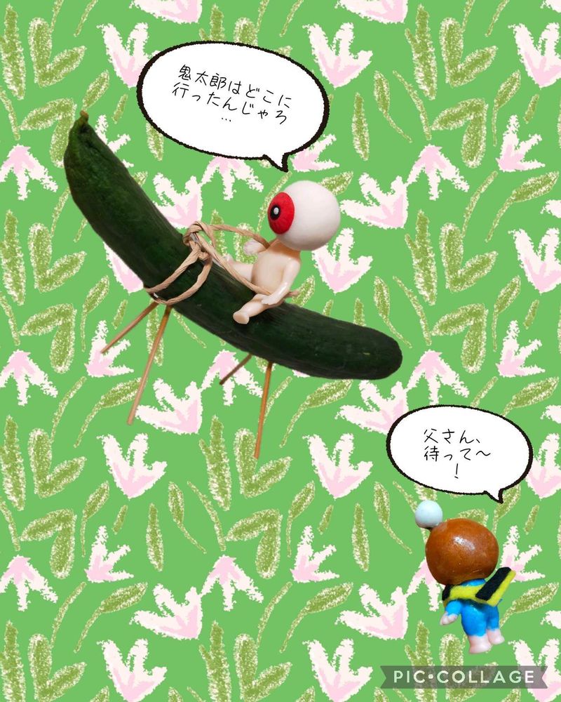 ご先祖樣が乗る用のお野菜にオヤジとおばちゃん乗せちゃいました〜🤣💦