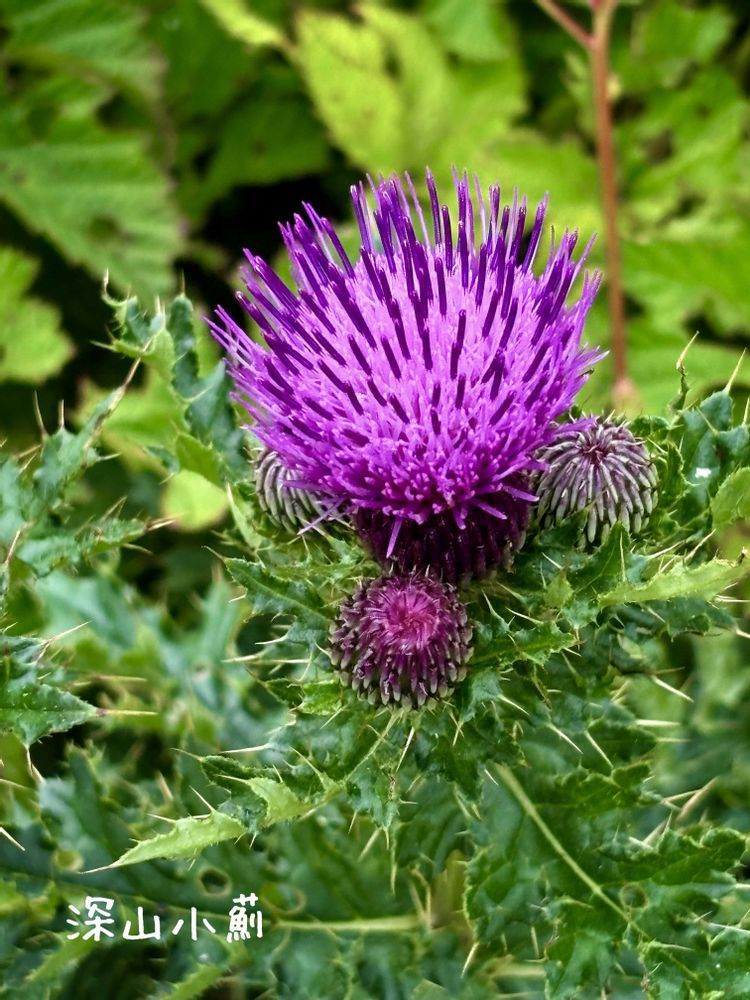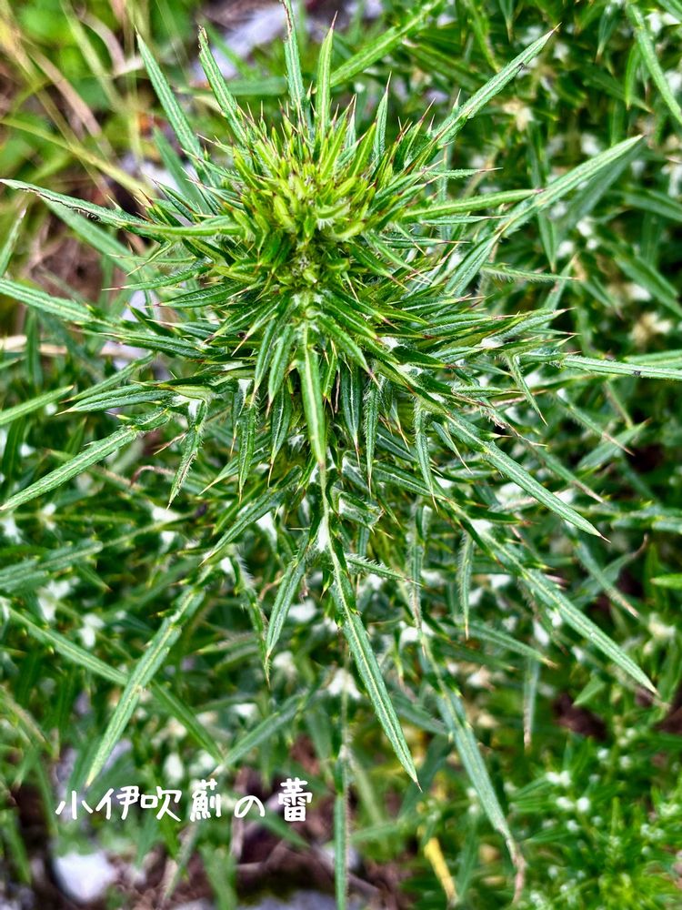 ノアザミの変種で石灰岩地帯で分化した種類。ノアザミより草丈が低く、葉の刺が多いのが特徴で同じ変種のトゲアザミより刺が短く太く、長さ3~5㎜。