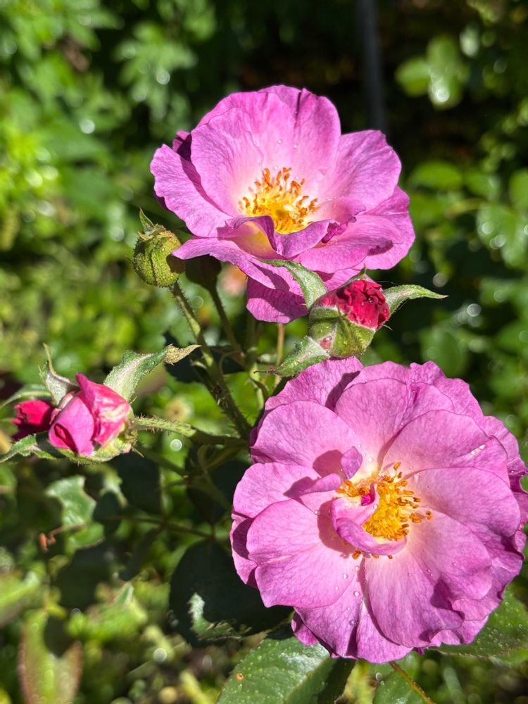 暑すぎる毎日、バラたちもあちこちで咲いていますがみんな小ぶりで傷みも早い💦