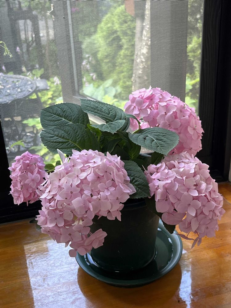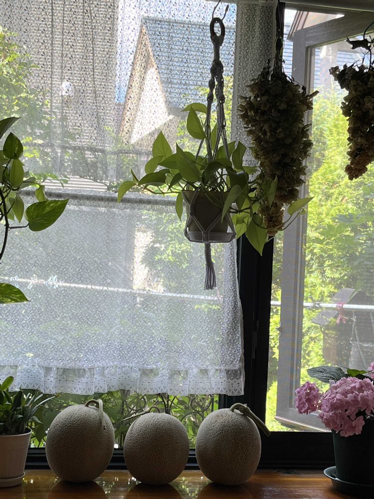 ピンクの可愛いアジサイを購入してから1ヶ月 外から出窓に置いて昨日から楽しんでます 毎年この時期いただくメロン美味しくなぁ〜れ❗️ スライドして下さいね