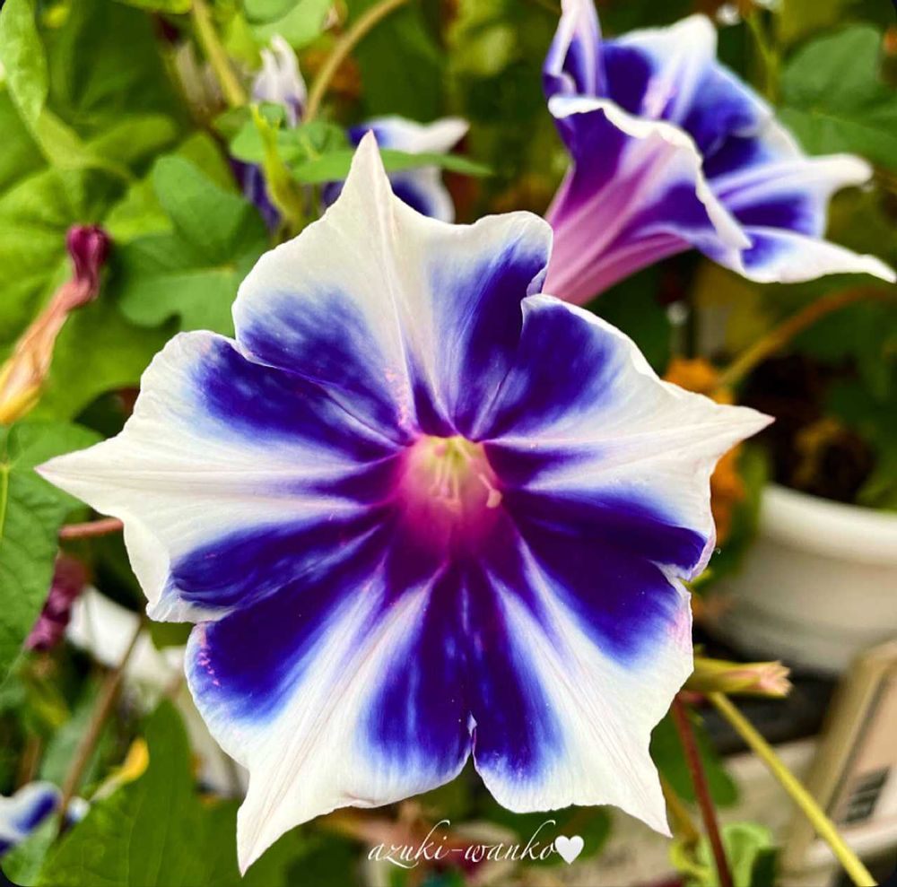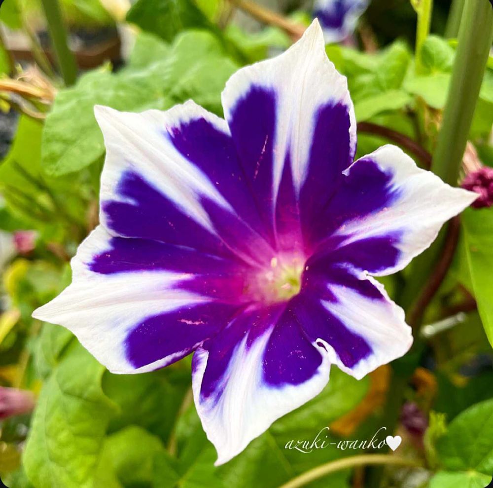 濃い紫に白いアクセントがキリッとした印象の素敵なアサガオですね💙💜🤍✨
