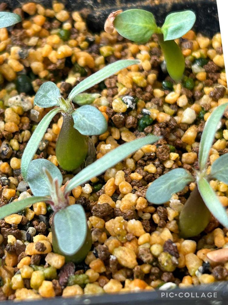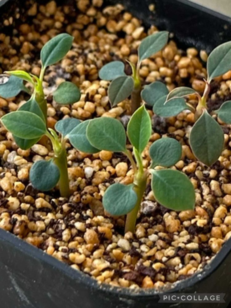 2枚目いただいたパキポディオイデス全て発芽。この子達の親がすごい好み😍これまた季節はずれだけど我慢できず撒いたモリコムム!鉢の下からは根がボーボー🤣