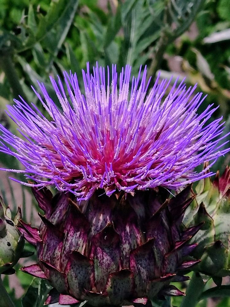モヒカンヘアーの凛々しい、色鮮やかなアザミですね🤭